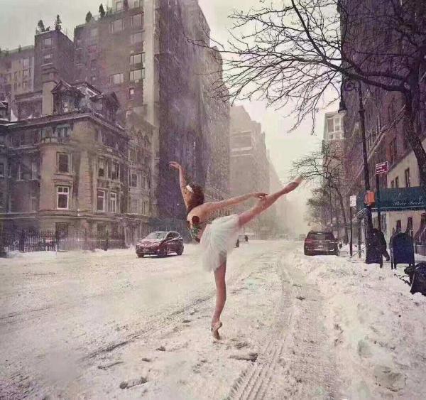这组风雪中的芭蕾照片是朋友在大降雪的当天在微信朋友圈发的。非常应景,借用了。青春的气息,大有”五岭逶迤腾细浪,乌蒙磅礴走泥丸。“的气派。