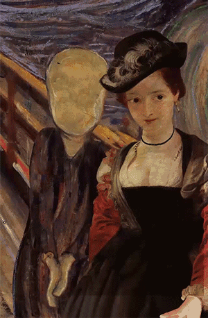 他特别喜欢热衷于油画Gif创作 擅长将古典油画重新置入 到现代的生活场景之中