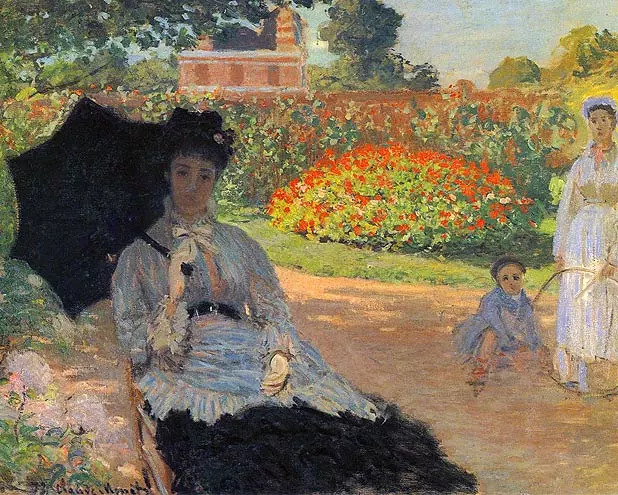 莫奈作品 撑伞的女人 后面小男孩是杰·莫奈