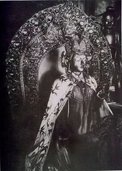 浙江省 普陀山法雨寺玻璃供坛内的白玉观音像