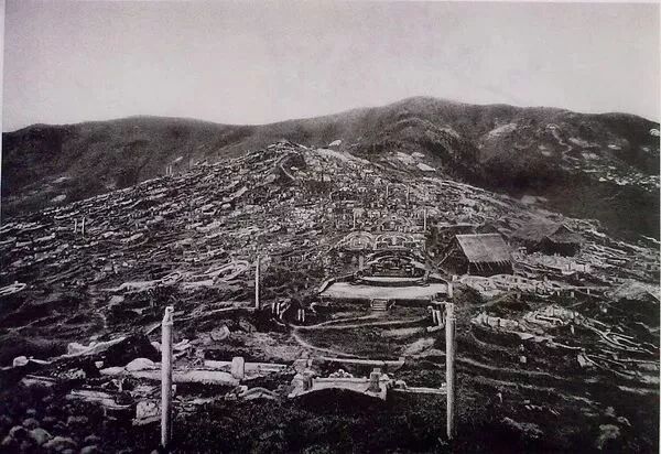 广东省 广州北部的无数墓地,南侧可见村庄,平原和西江