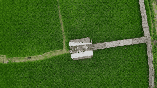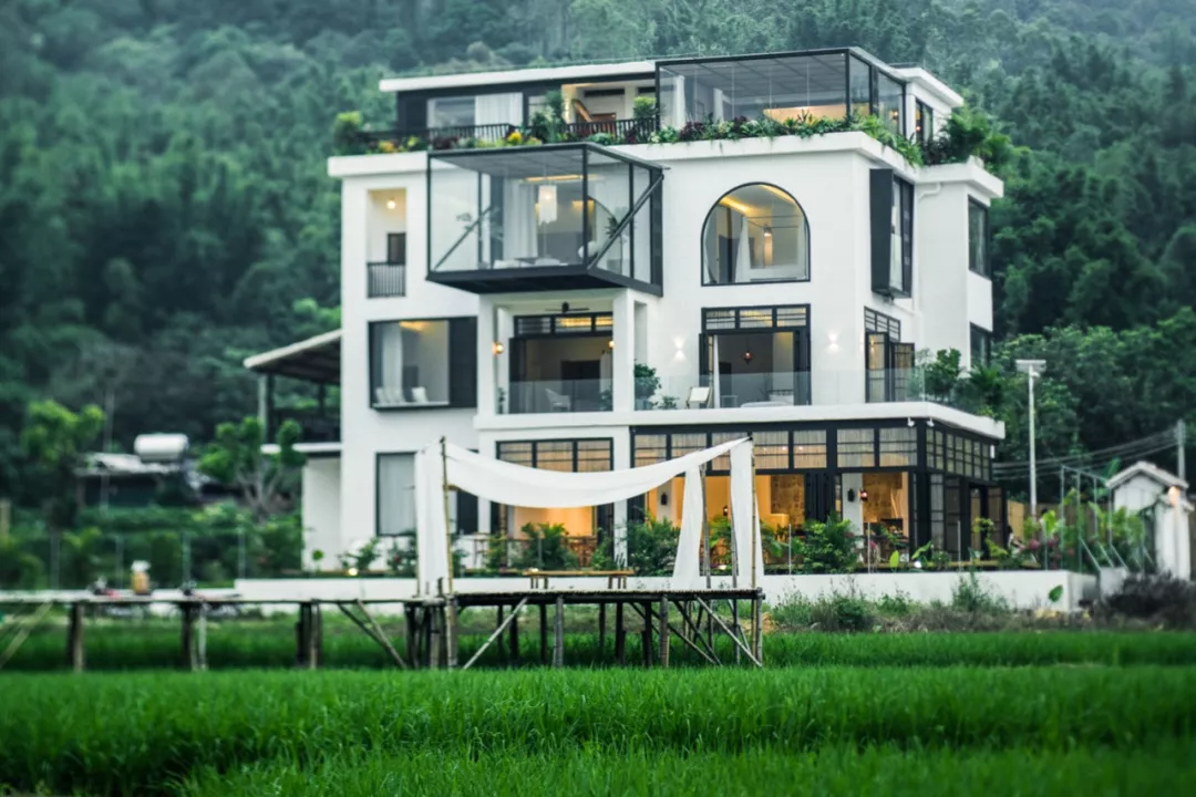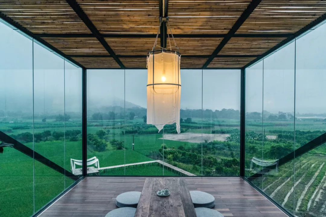 三面都能看到稻田的悬空玻璃屋、