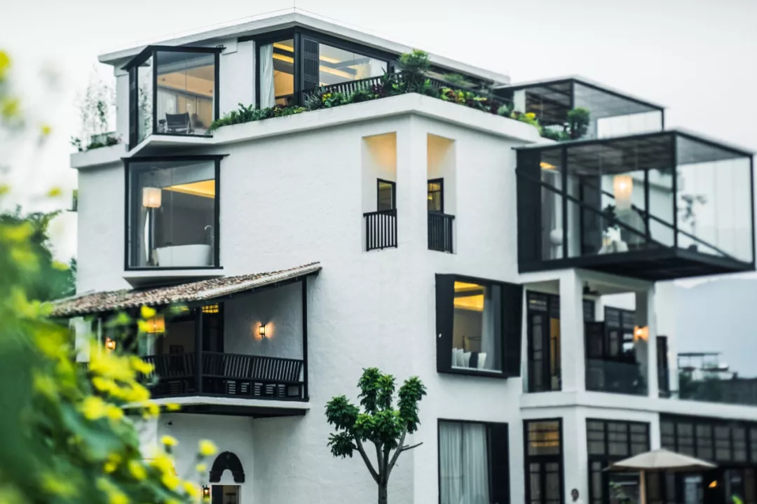 金杜觉得,既然要保留罗马柱,不如干脆将原本的框架向外延伸一点,设计一个悬挑在稻田里的玻璃屋,做一个“玻璃盒子”。