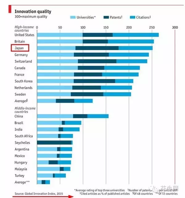 另一份来自《Economist》的报告指出,日本的国家创新质量(Innovation Quality)位列世界第三。