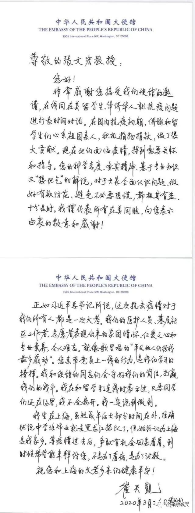 崔天凯写给张文宏的亲笔信。 这样的医生,怎能让人不爱?我倒是希望,张文宏医生能一路高升,担任国家卫计委主任,甚至担任世界卫生组织领导,造福全人类。 但是,张文宏医生升官,我也有点担心。 1,大家都知道,官场上往往是屁股指挥脑袋,张文宏医生也不能例外。就怕他在升职后,说话就不能那么随意,和民众的距离会逐渐拉大。 2,张文宏本来就很忙,升职后天天文山会海,还要面对公众,患者,学生……长此下去,身体怎么能受得了。 3,咱们的很多老百姓,翻脸比翻书还快。当张文宏医生高升后,对他的期望越大,失望也会越大。会疯狂攻击他,骂他。就像陈佩斯在一个小品中的台词:朱时茂啊朱时茂,我万万没想到,你这样浓眉大眼的家伙也能当叛徒! 但愿我是杞人忧天。不管怎么说,升职都是好事,希望这不是一个乌龙消息,更希望张文宏能一直火下去,毕竟在当今社会,像他这样的人太少了。
