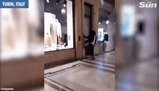 (意大利都灵) 破碎的玻璃渣落满一地,触目惊心。
