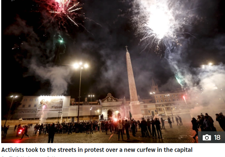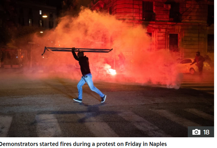 与此同时,意大利新冠总确诊人口已经突破50万,仅仅周日一天,新增确诊就高达21,273人,128人死亡。重疫之下,政府下令重新封锁,没想到民众反应竟如此过激。