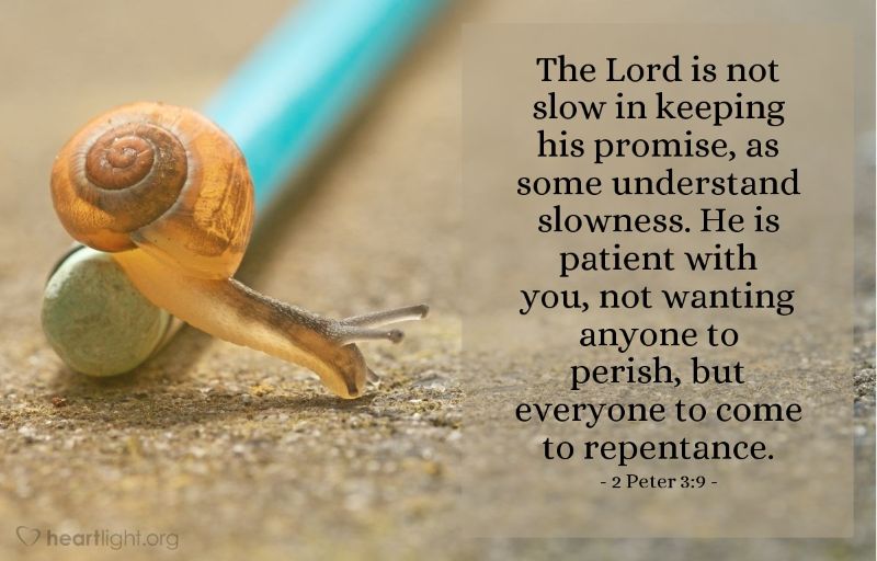 彼得后书3:9说:“主所应许的尚未成就。有人以为祂是耽延,其实不是耽延,而是宽容。”这里的对象是谁呢?是“你们”。大多数中文版本翻译成“你们”,有的版本翻译成“我们”,但没有任何版本翻译成“他们”。前面第八节也同样说:“亲爱的弟兄们。”这里的“你们”,指的是基督徒。主乃是宽容我们,祂在等候我们去传福音!祂不愿一人沉沦,乃愿人人都悔改!