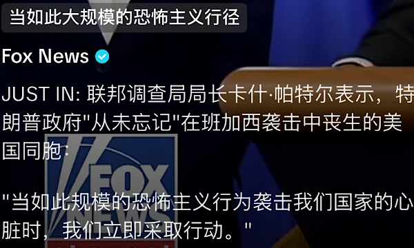 我们的主权将会收复。我们的安全将会恢复。司法的天平将重新平衡。司法部和我们政府被恶意、暴力且不公正地武器化的现象将结束。